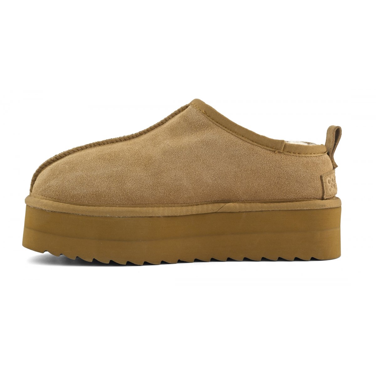 Sabot platform in pelle scamosciata, fodera e sottopiede in vera pelliccia di montone.
