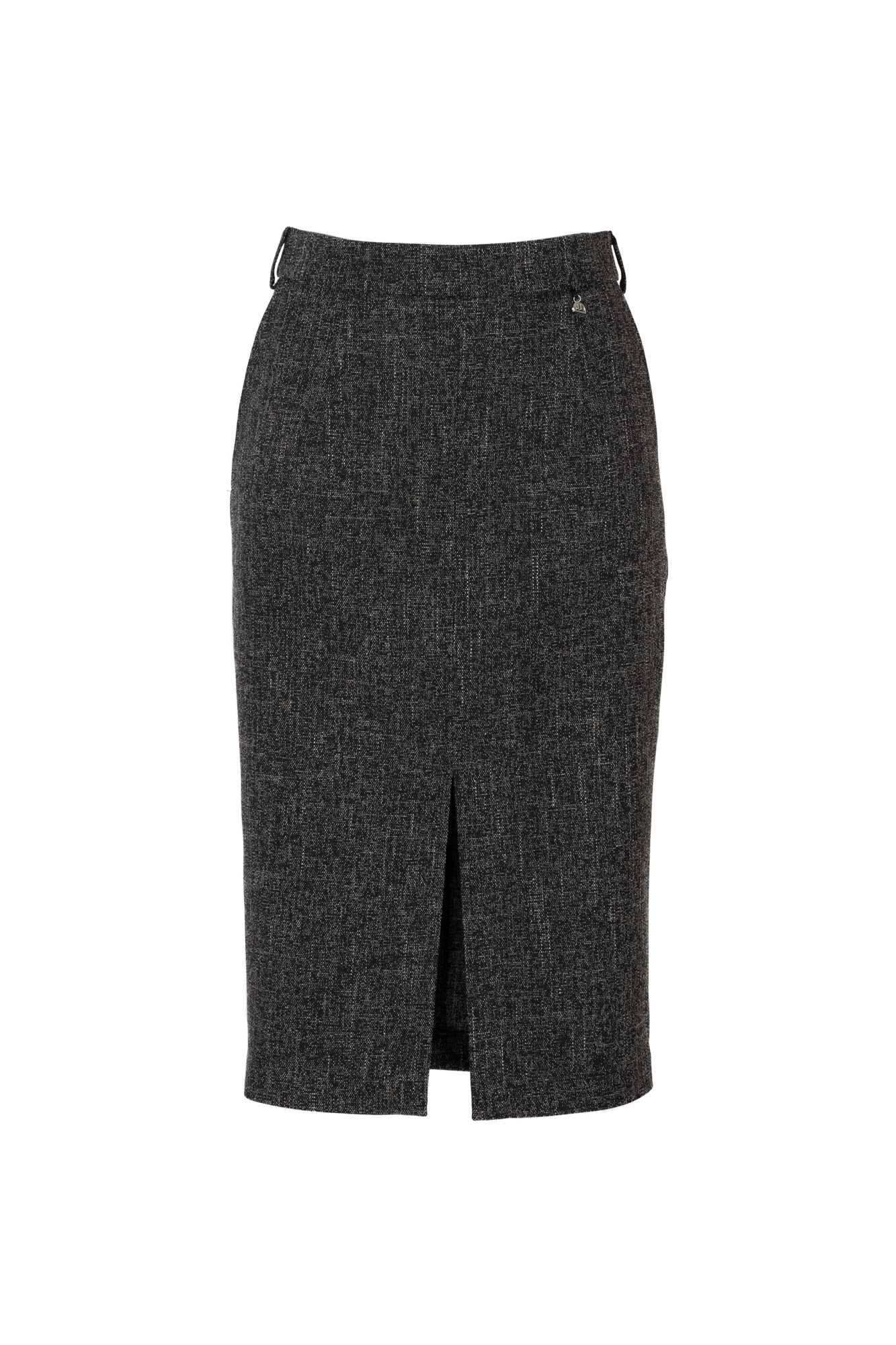 Gonna tubino in misto lana sale e pepe con spacco davanti.