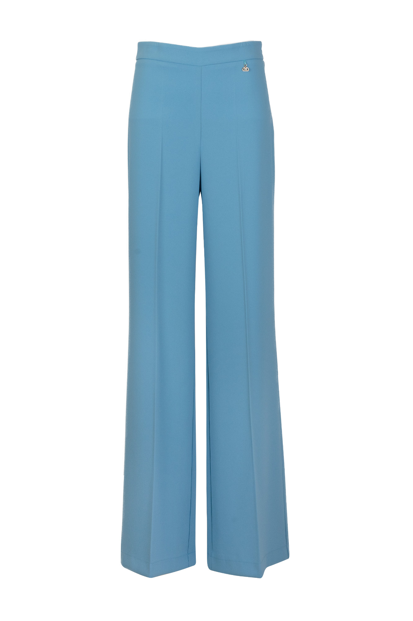 Pantalone in cady, vita alta, gamba ampia, zip laterale invisibile, stiratuta con piega centrale sulla gamba.