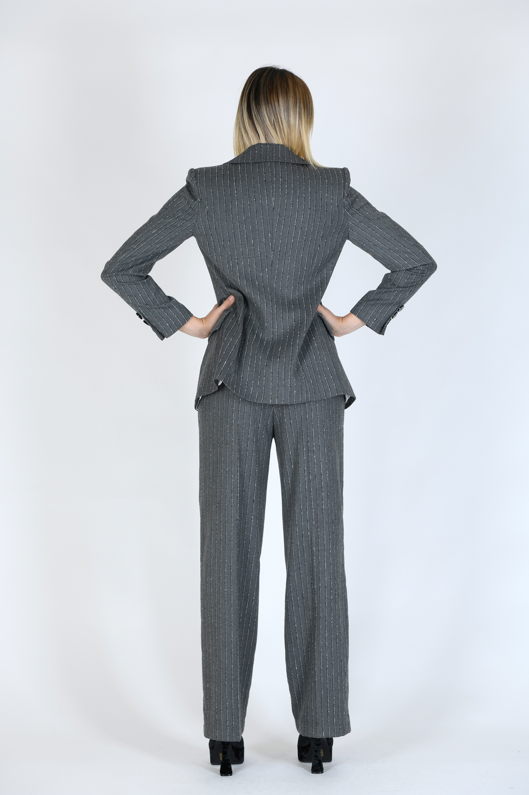 pantalone modello diritto, in tessuto gessato operato