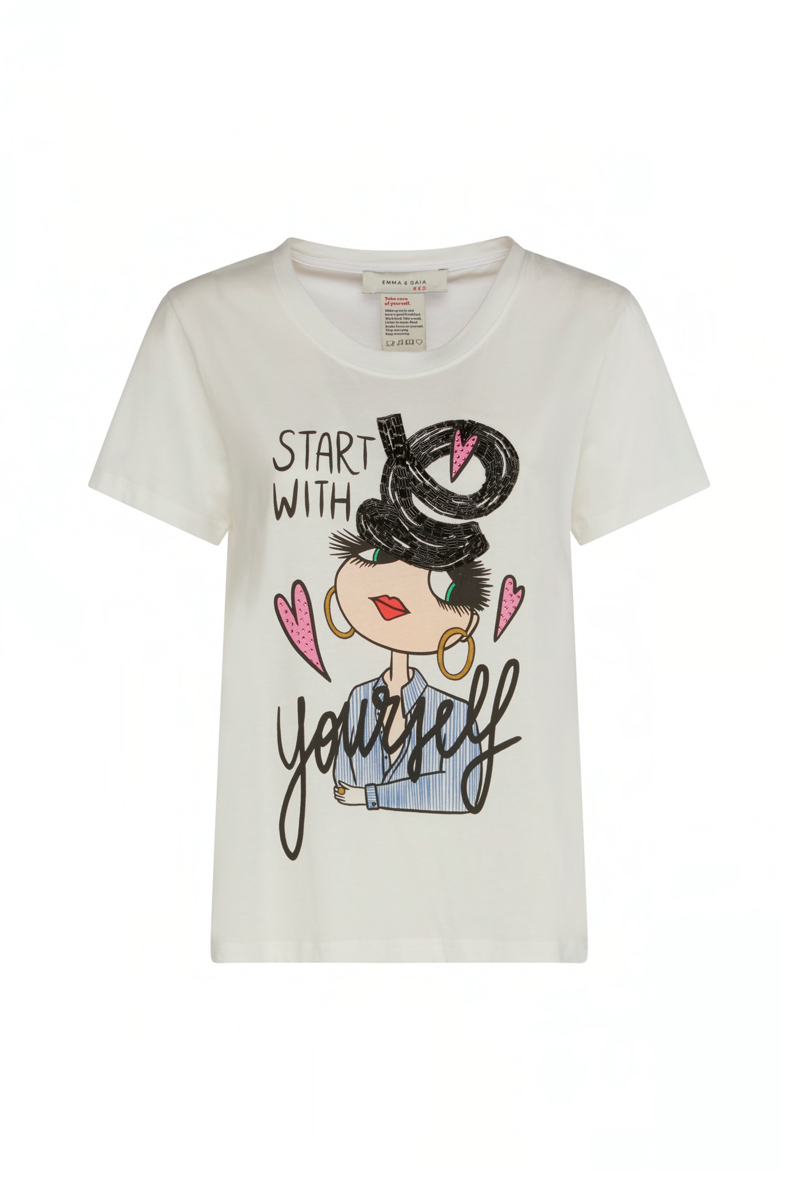 t-shirt manica corta con stampa e applicazioni