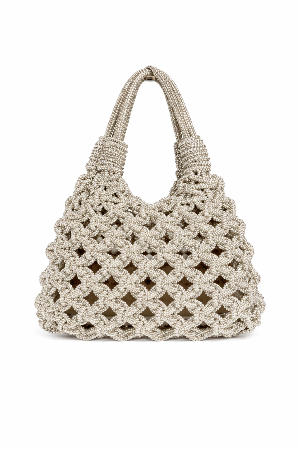 La borsa Vannifique è laccessorio iconico delle collezioni Hibourama. Realizzata interamente a mano secondo una pregiata tecnica di intreccio, questa borsa nella sua versione mini è un accessorio di grande modernità ed eleganza. Il filato ricoperto da preziosi cristalli illumina il modello.