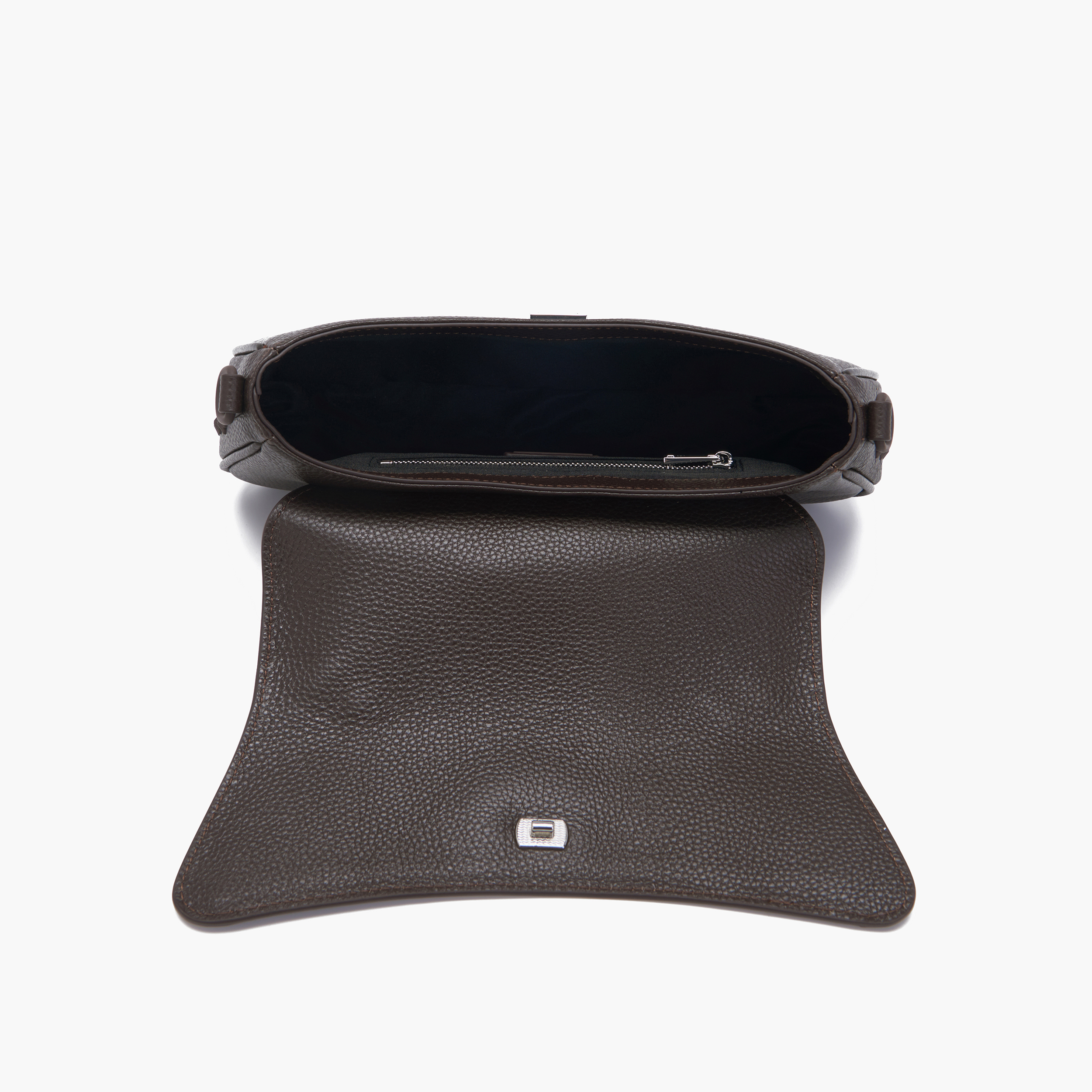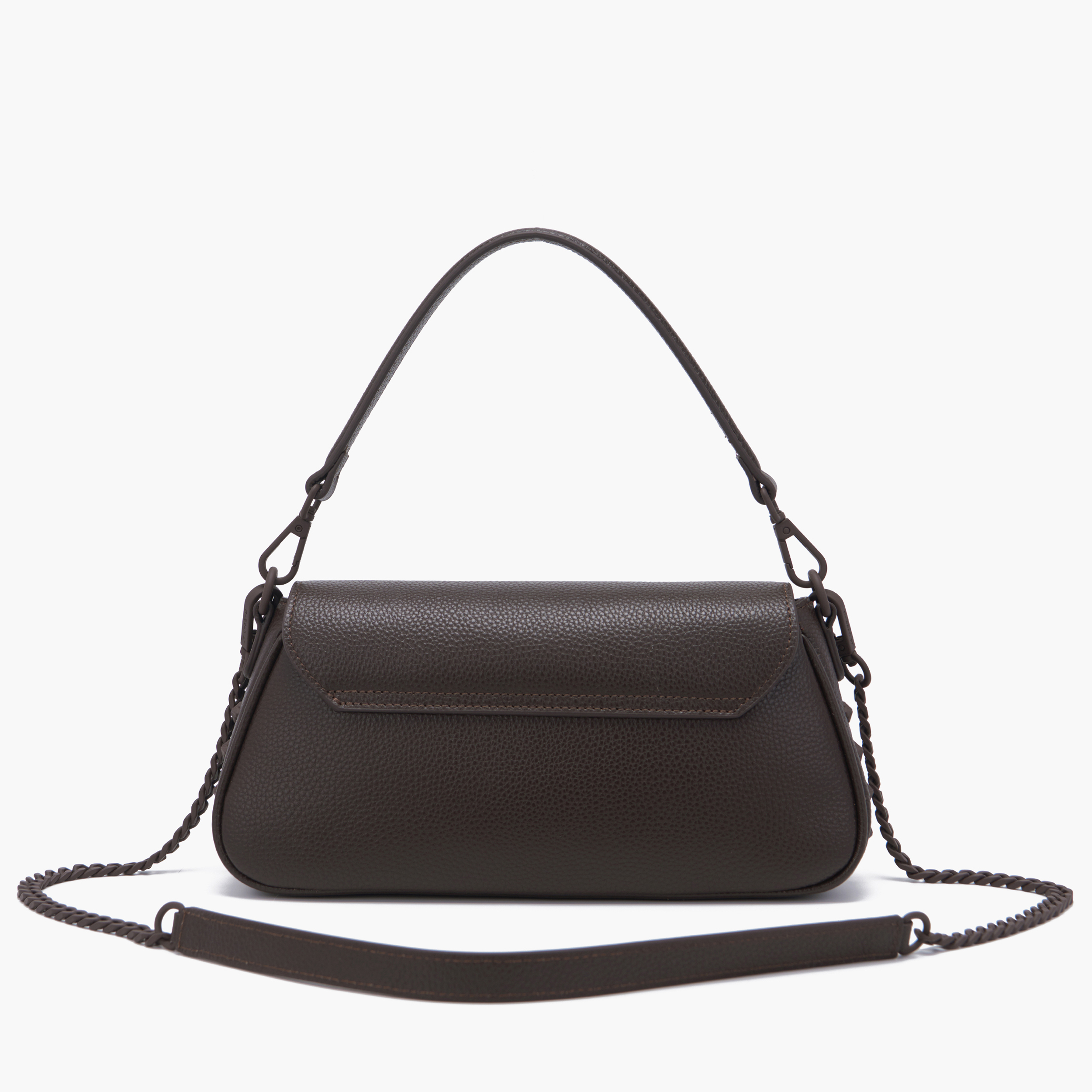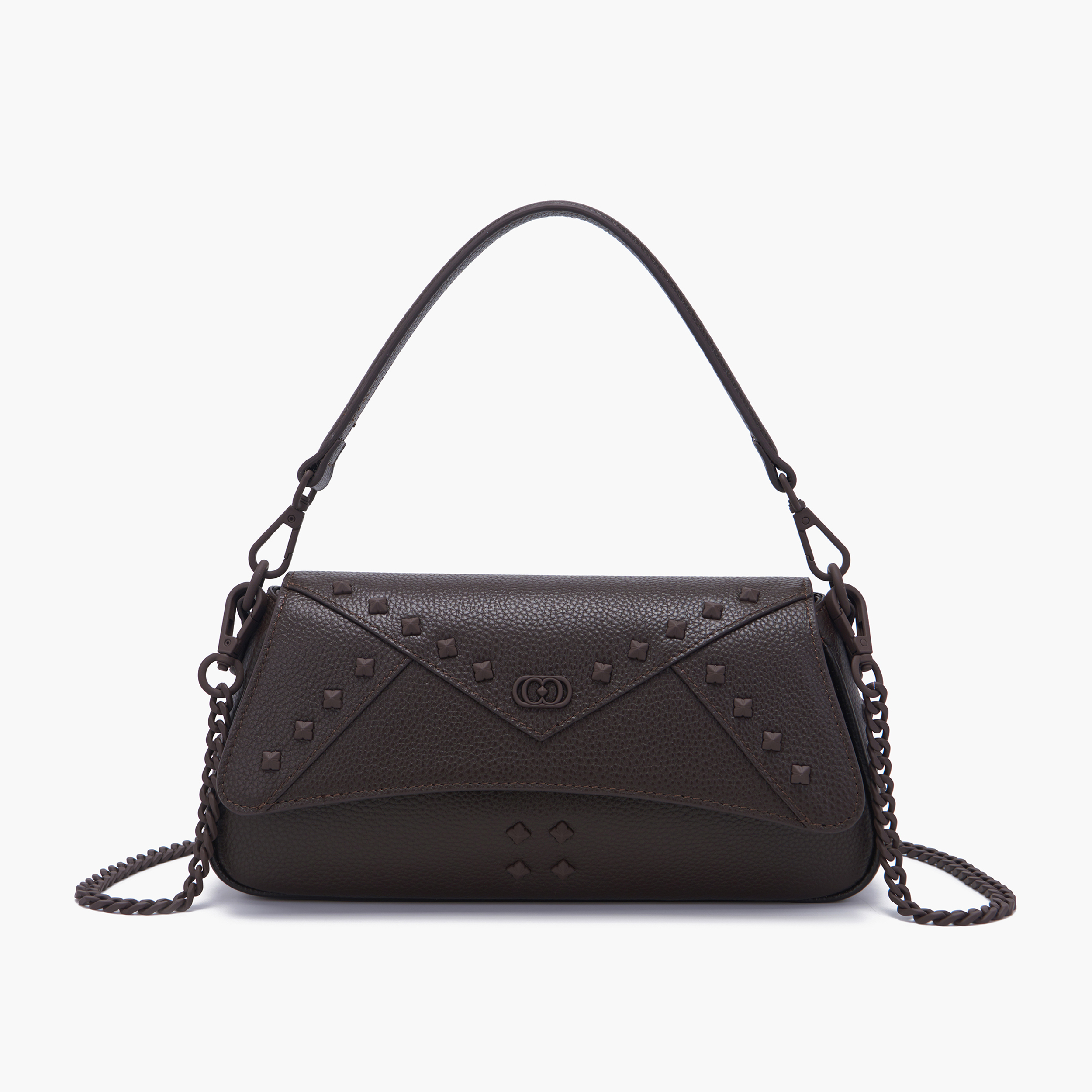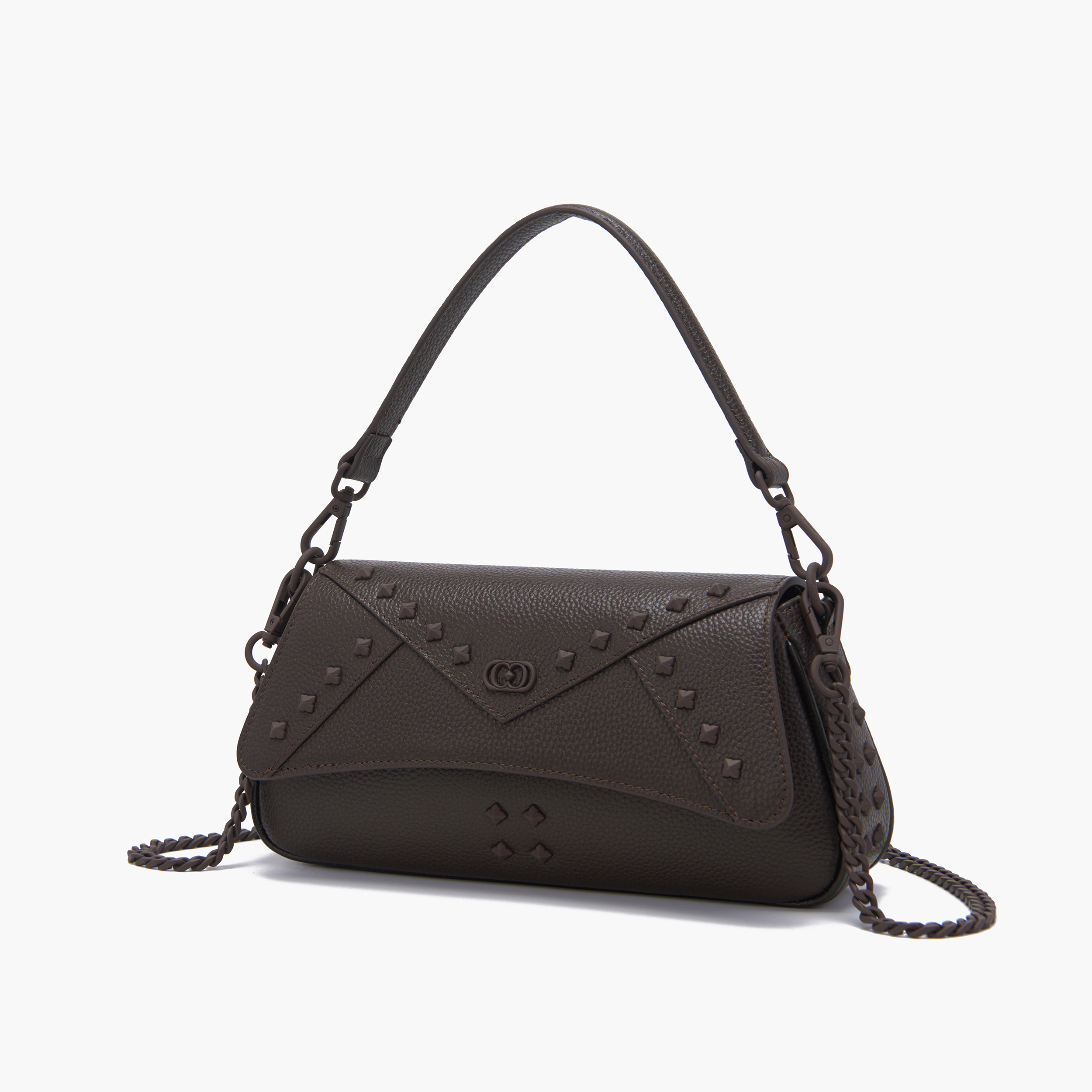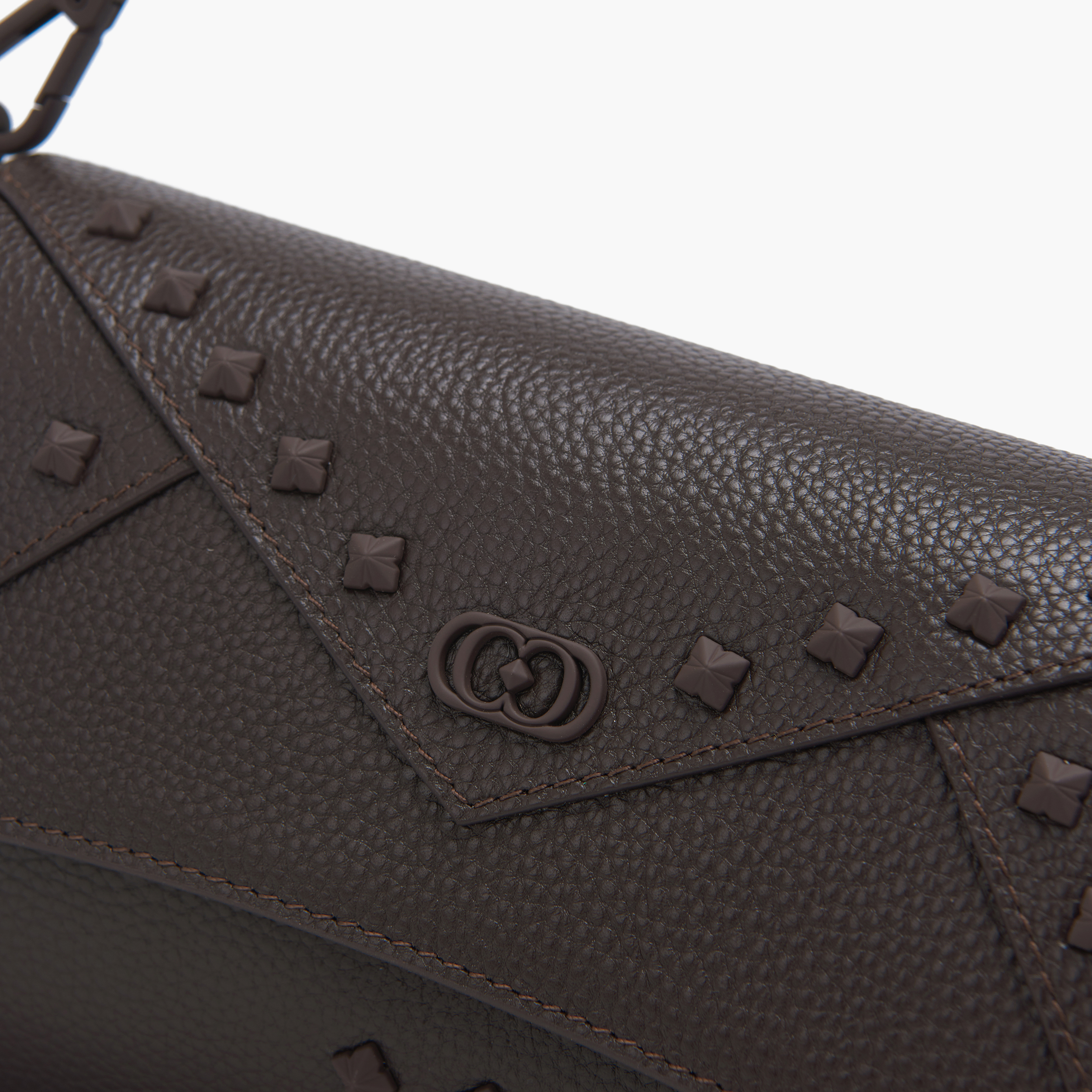 borsa a mano media in pelle bottalata, borchie tono su tono, tracolla laccata in tinta removibile