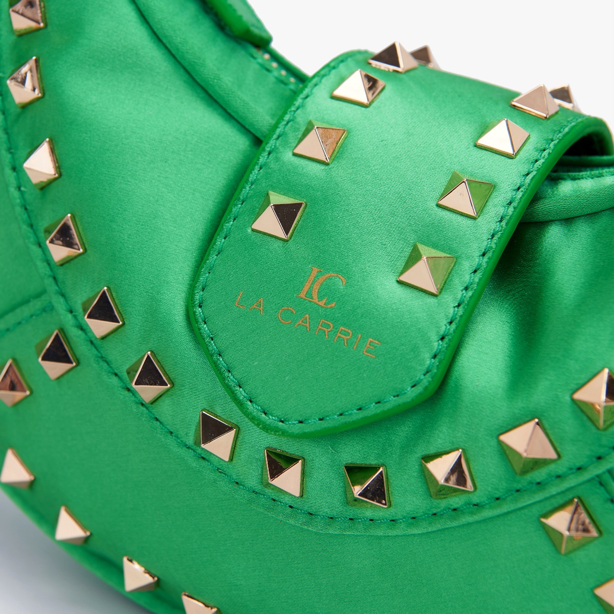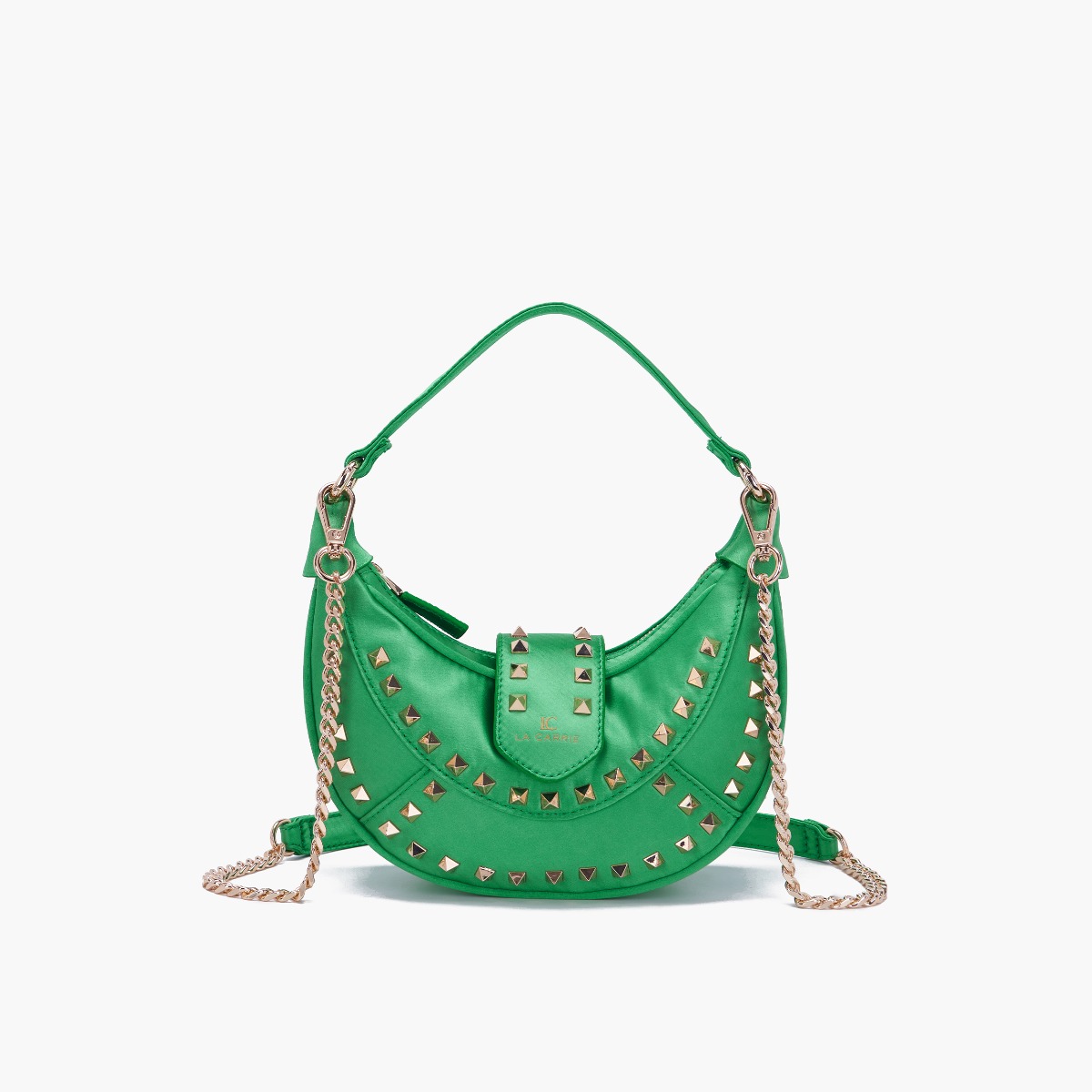 borsa a mano a mezzaluna in seta con tracolla rimovibile.