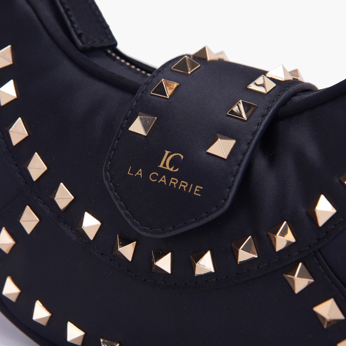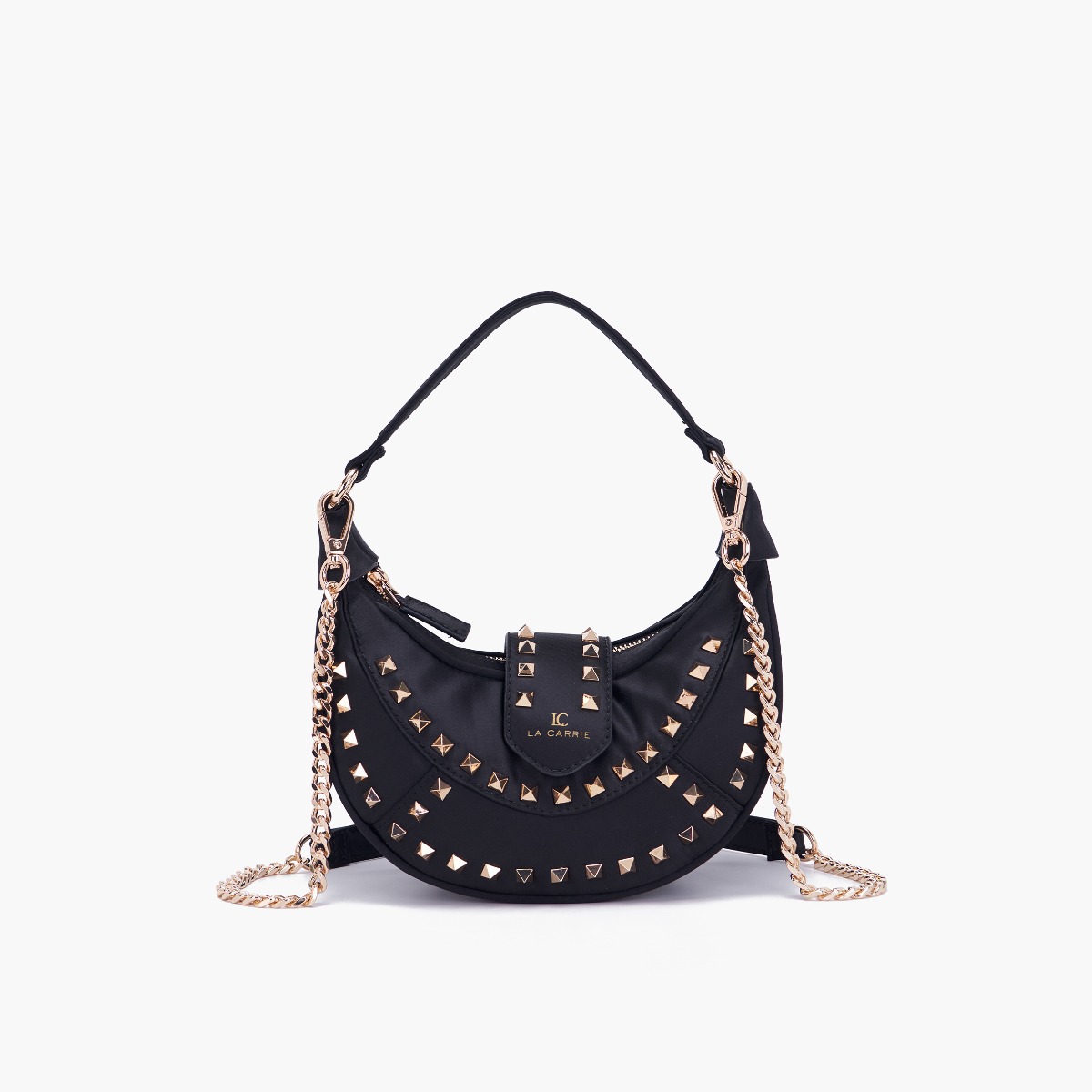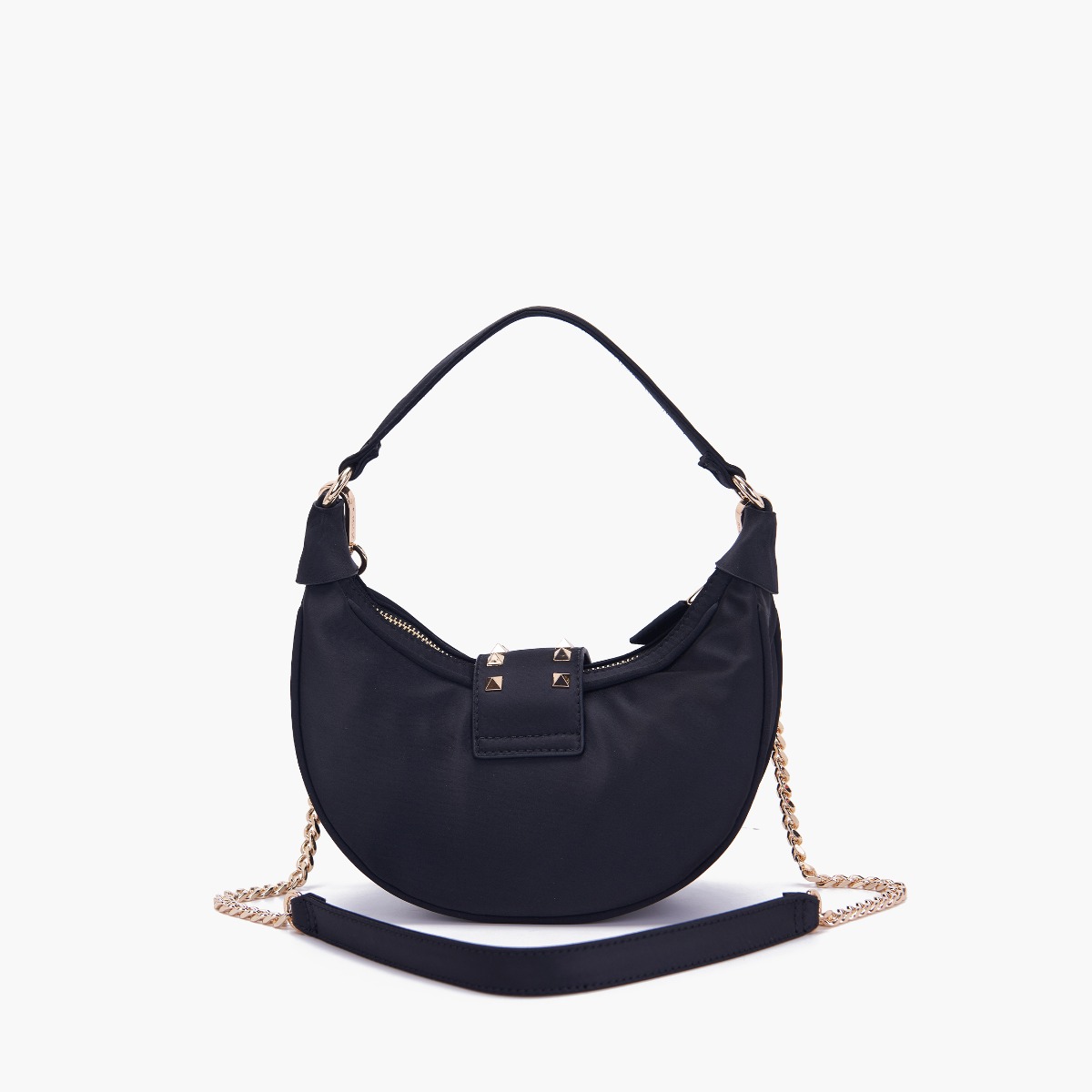 borsa a mano a mezzaluna in seta con tracolla rimovibile.