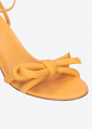 Sandali in pelle con tacco a spillo, punta tonda fiocco realizzato con cinturino tubolare e cinturino alla caviglia regolabile