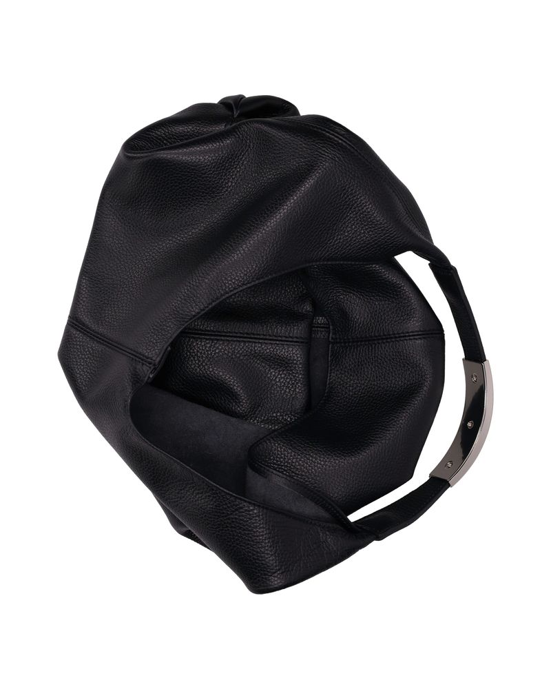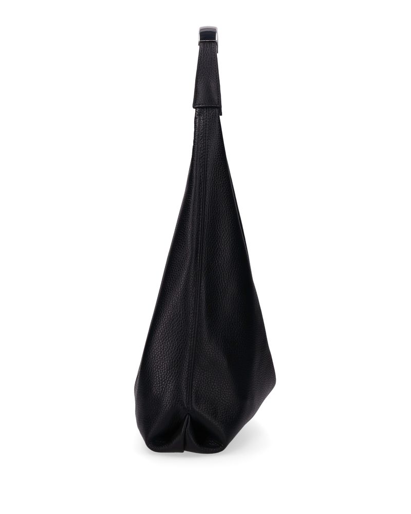 Borsa Ellisse media in pelle dollaro nera, cucitura decorativa trasversale, chiusura con calamita, dettaglio argentato sul manico. All'interno è presente una pochette in pelle dello stesso colore, con tracolla regolabile in pelle che può diventare una seconda borsa all'occorrenza.