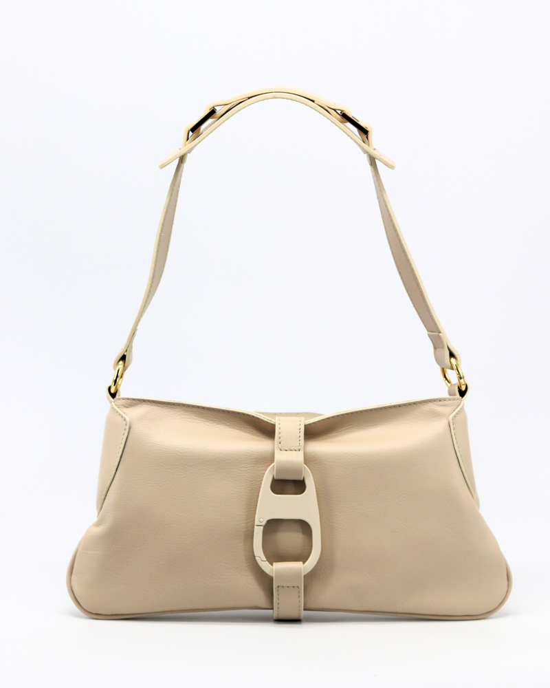 Borsa Paris Classique in pelle con moschettone tono su tono, chiusura con zip, dotata di tracolla aggiuntiva in pelle regolabile dello stesso colore.