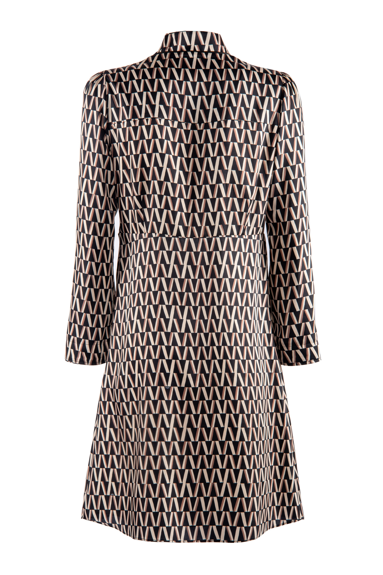 Abito corto in twill di poly con stampa logomania, scollo a V e maniche a 3/4.