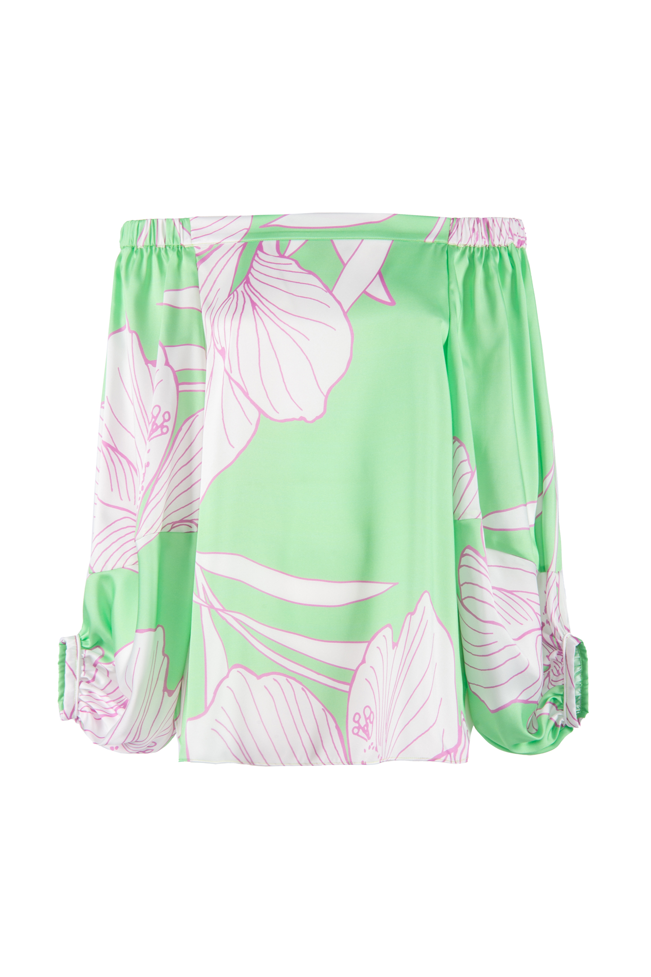 blusa in twill di poli ,stampa macrofiore, elastico sulla scollatura, manica ampia, over