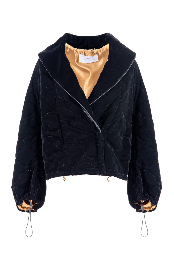 Piumino corto vellutato, fodera in raso di viscosa a contrasto