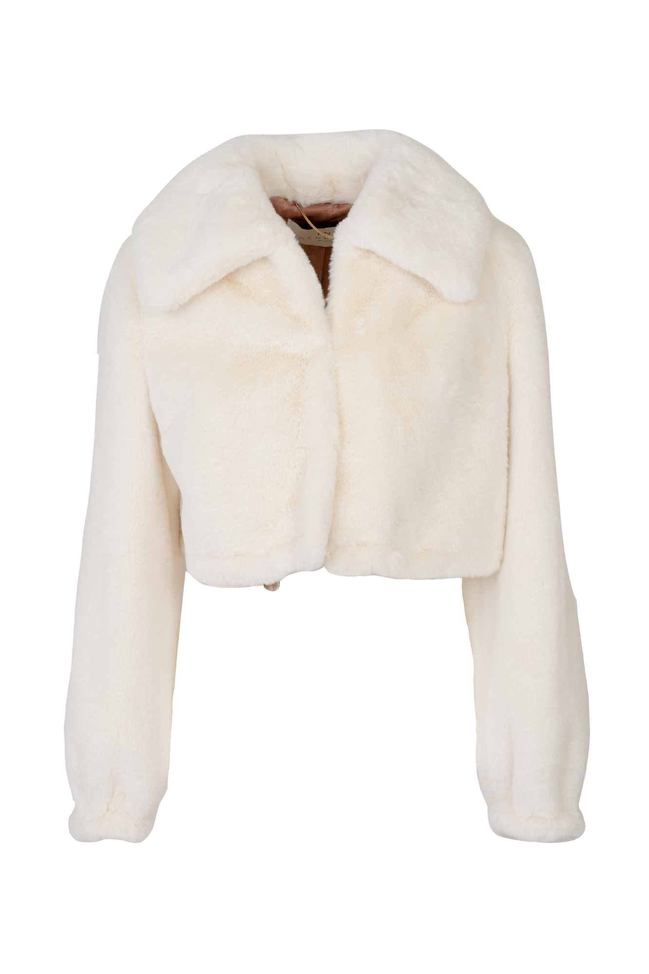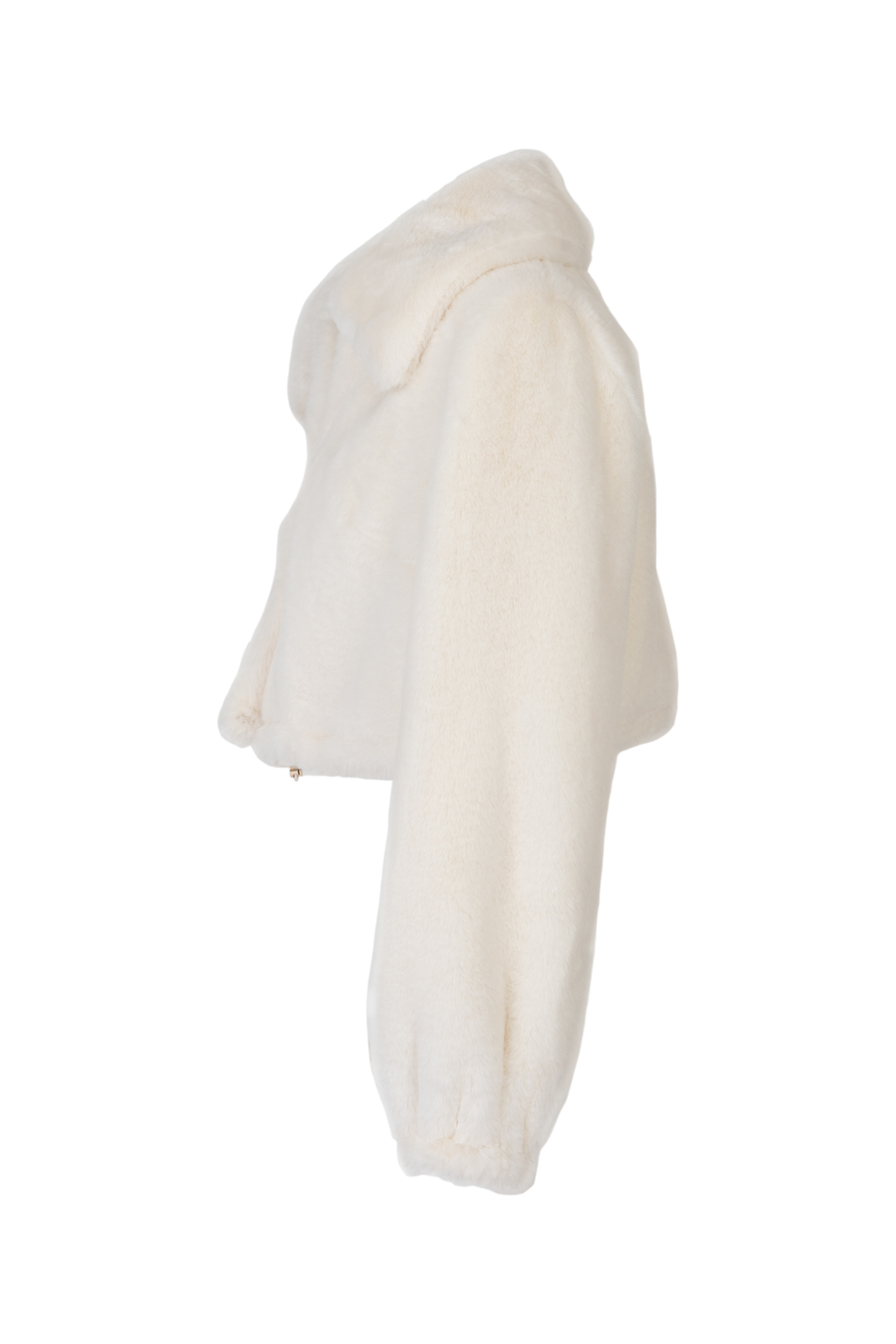 bolero in eco-pelliccia con coulisse e chiusura con gancini