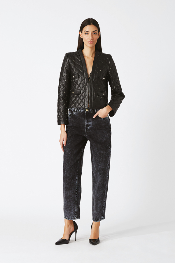 Giacca trapuntata in ecopelle con borchiette.