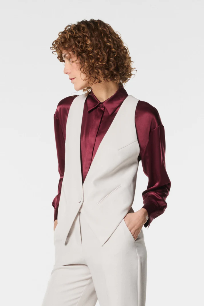 Gilet monopetto color ghiaccio lungo in twill di poly.