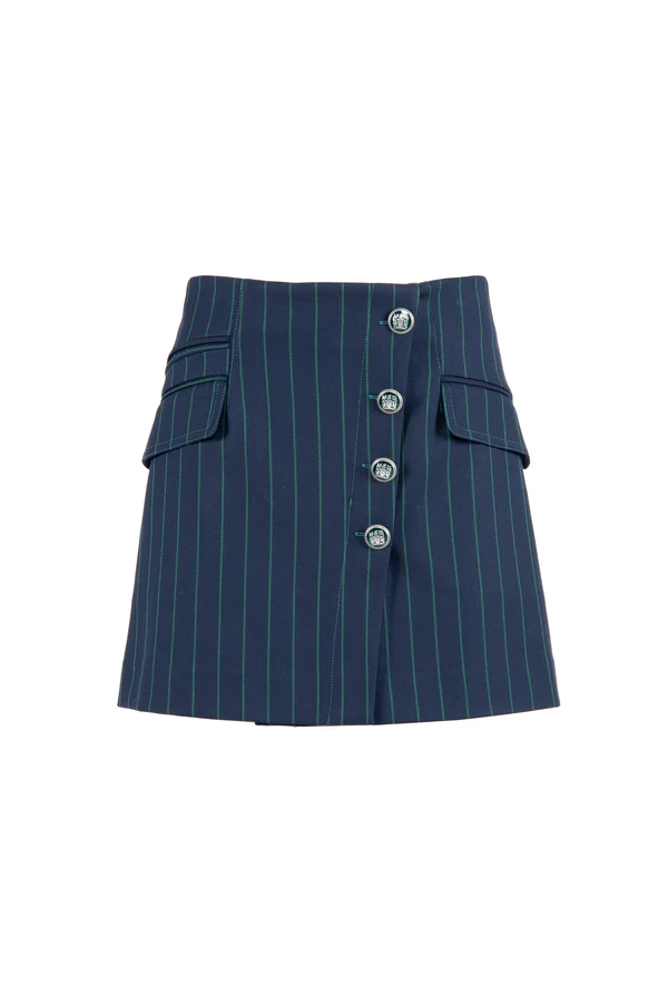 gonna mini in tessuto regimental, con patte su fianchi, a trapezio con bottoncini laterali