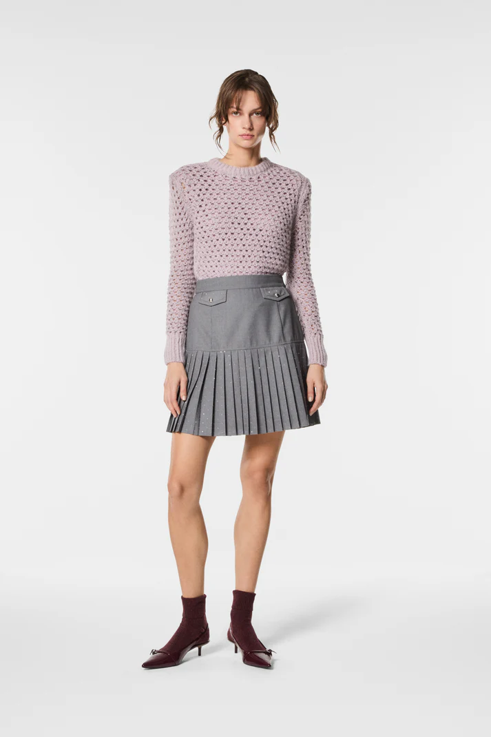 Gonna con pannello full-plissè impreziosito da micro-strass.