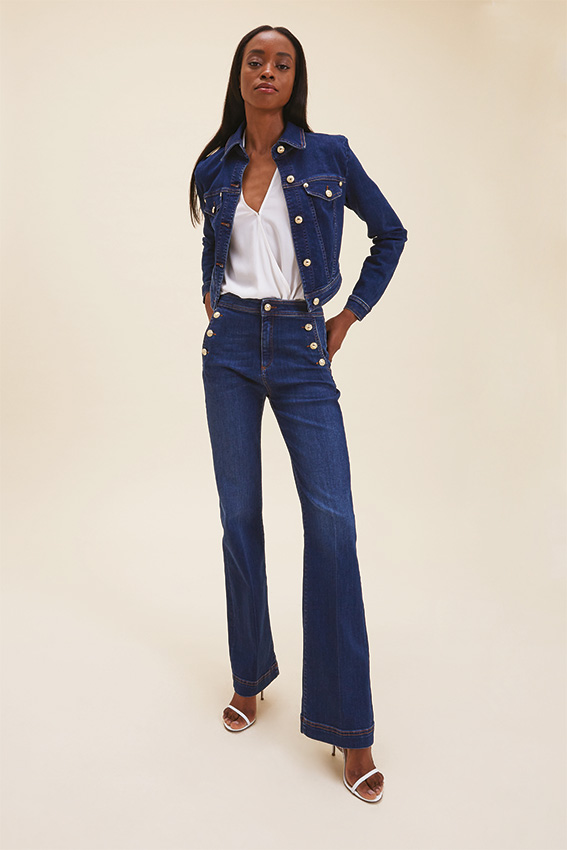 pantalone bootcut denim tela candiani superstretch, svasato sul fondo
