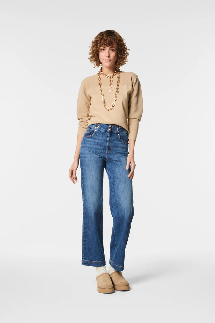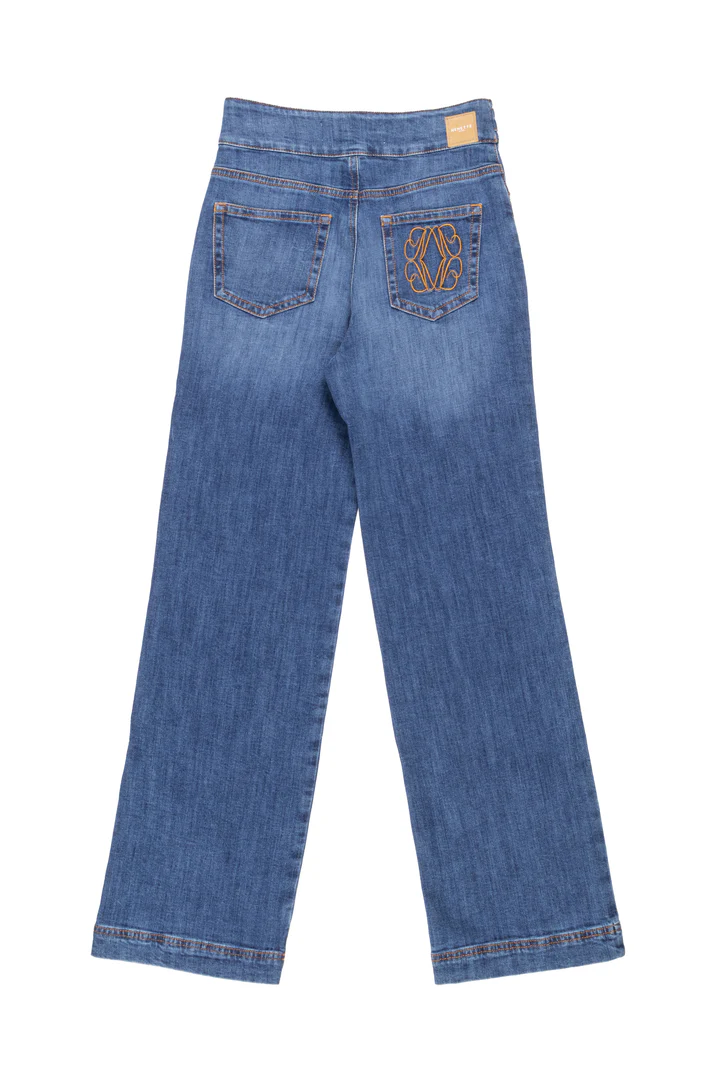Pantalone a gamba dritta con cintura e dettagli oro satinato, tela comfort.