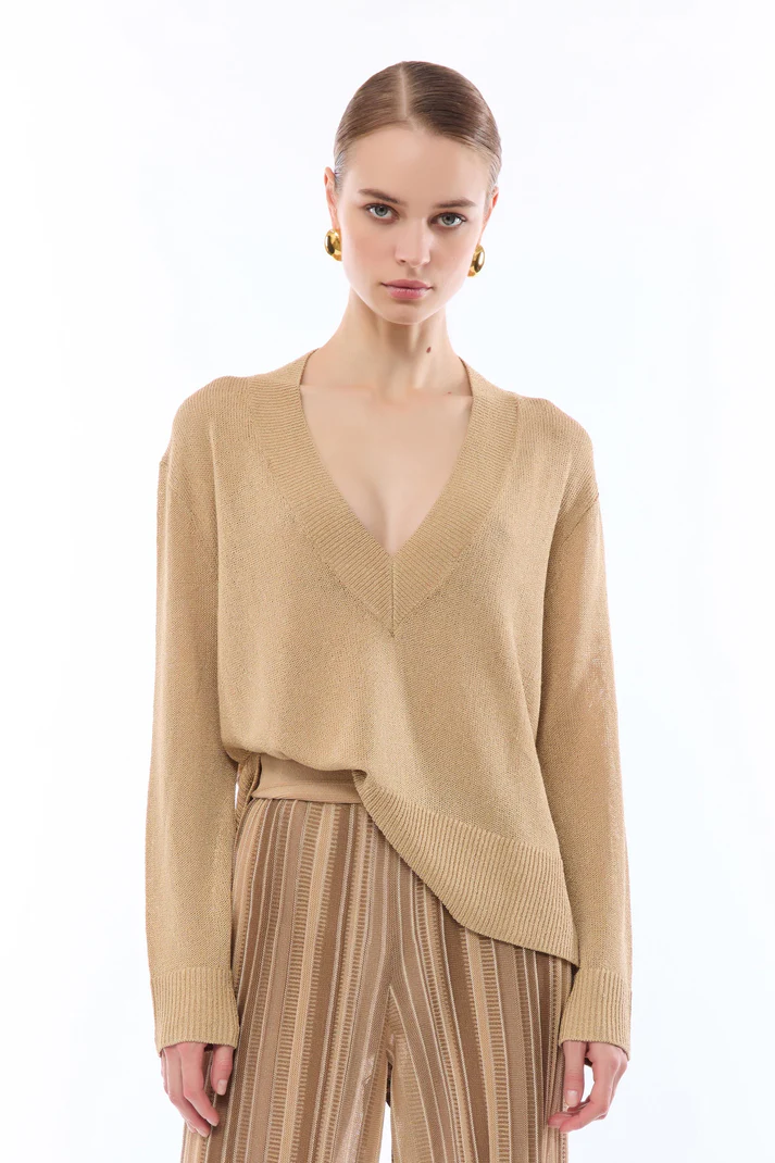 Maglia in filato di viscosa, scollo a v, linea morbida.