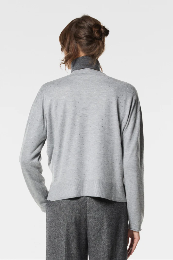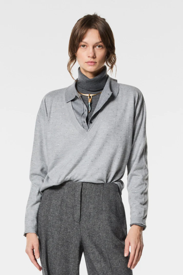 Maglia in misto lana con scollo a v e colletto impreziosita da micro-strass.