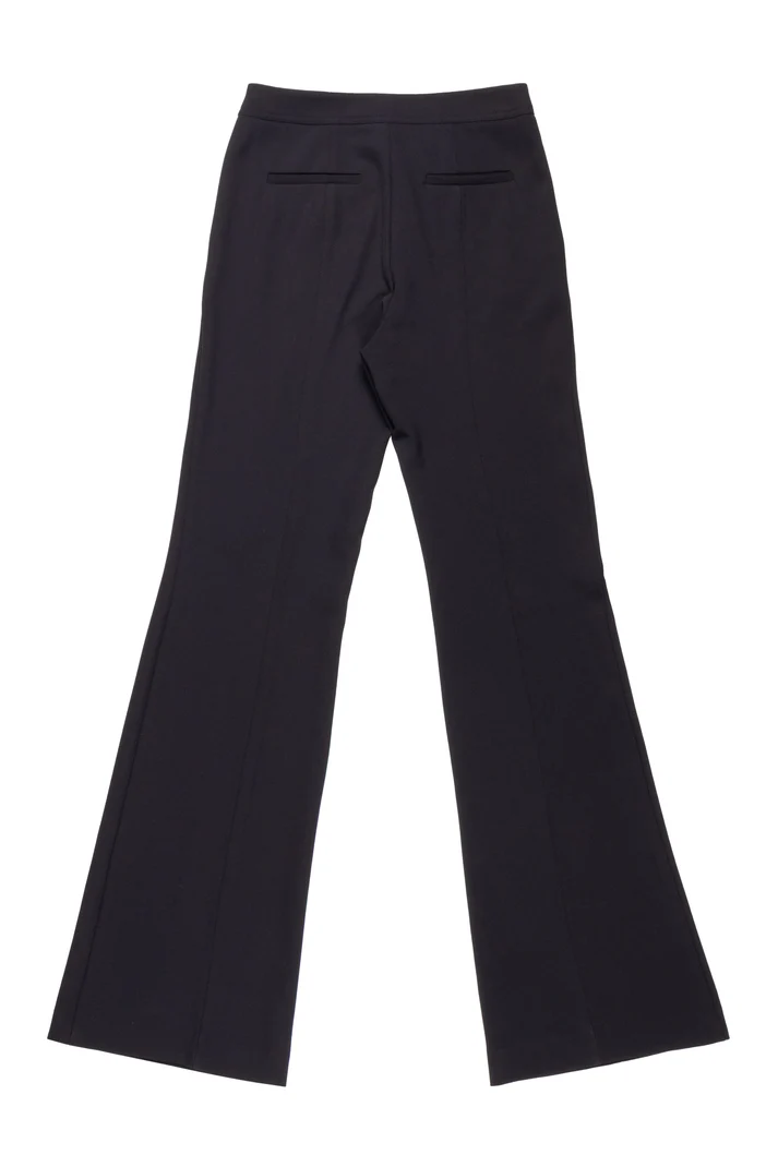 Pantalone a zampa in cady, vita alta, zip sul davanti.
