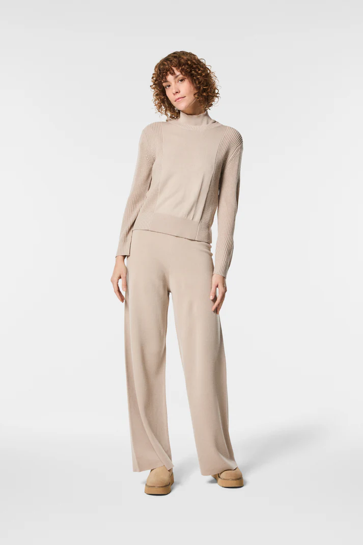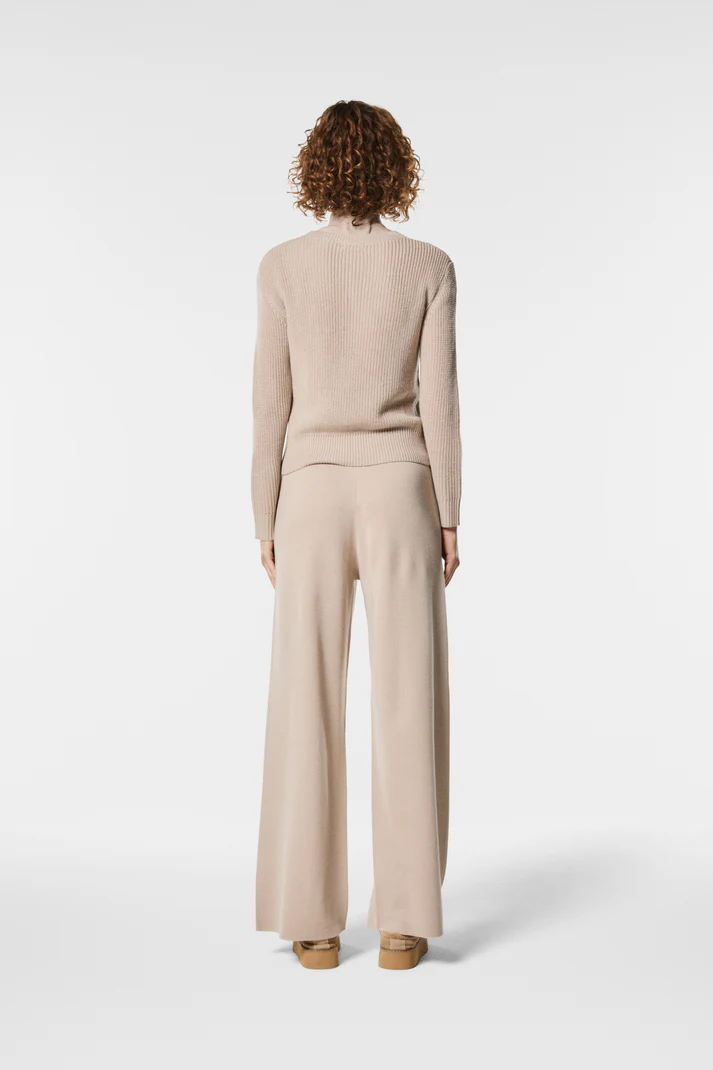 Pantalone palazzo in maglia di lana punto stoffa, elastico in vita.