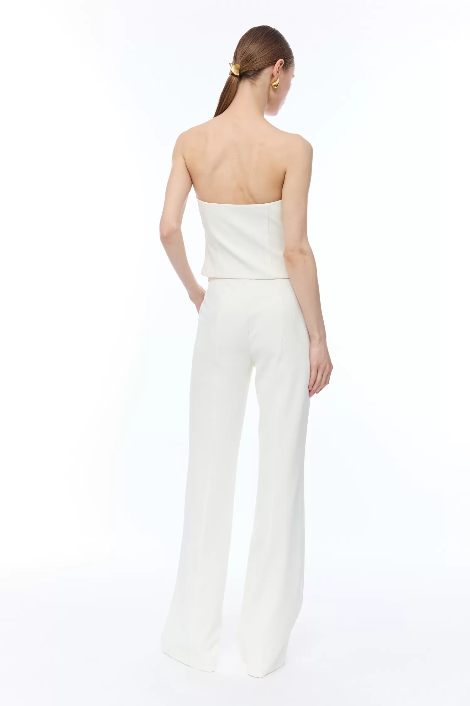 Top bustier in cady di poly, chiusura con zip laterale, taglio arrotondato sul davanti.