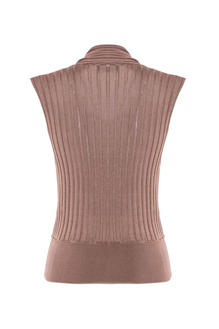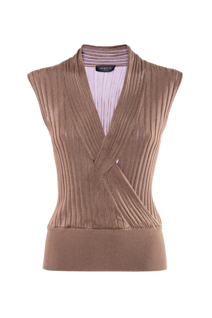 Top in maglia di viscosa con lavorazione a coste, incrocio sul davanti con intreccio.