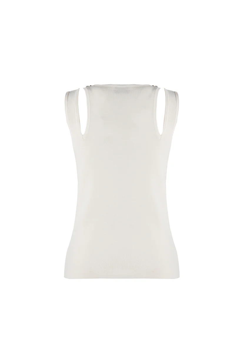 Top in maglia con scollo a V e strass applicati.