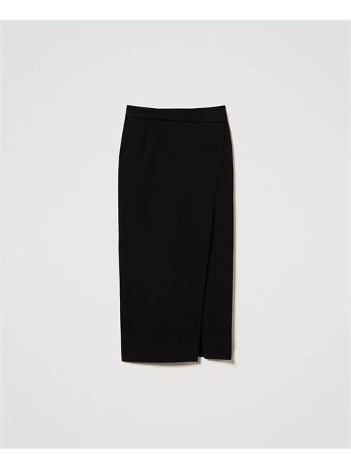 Gonna lunga in lana rasata, taglio sartoriale, con spacco profondo sul retro, tasche a filo sul fronte e con patta e bottone sul retro, passanti per cintura