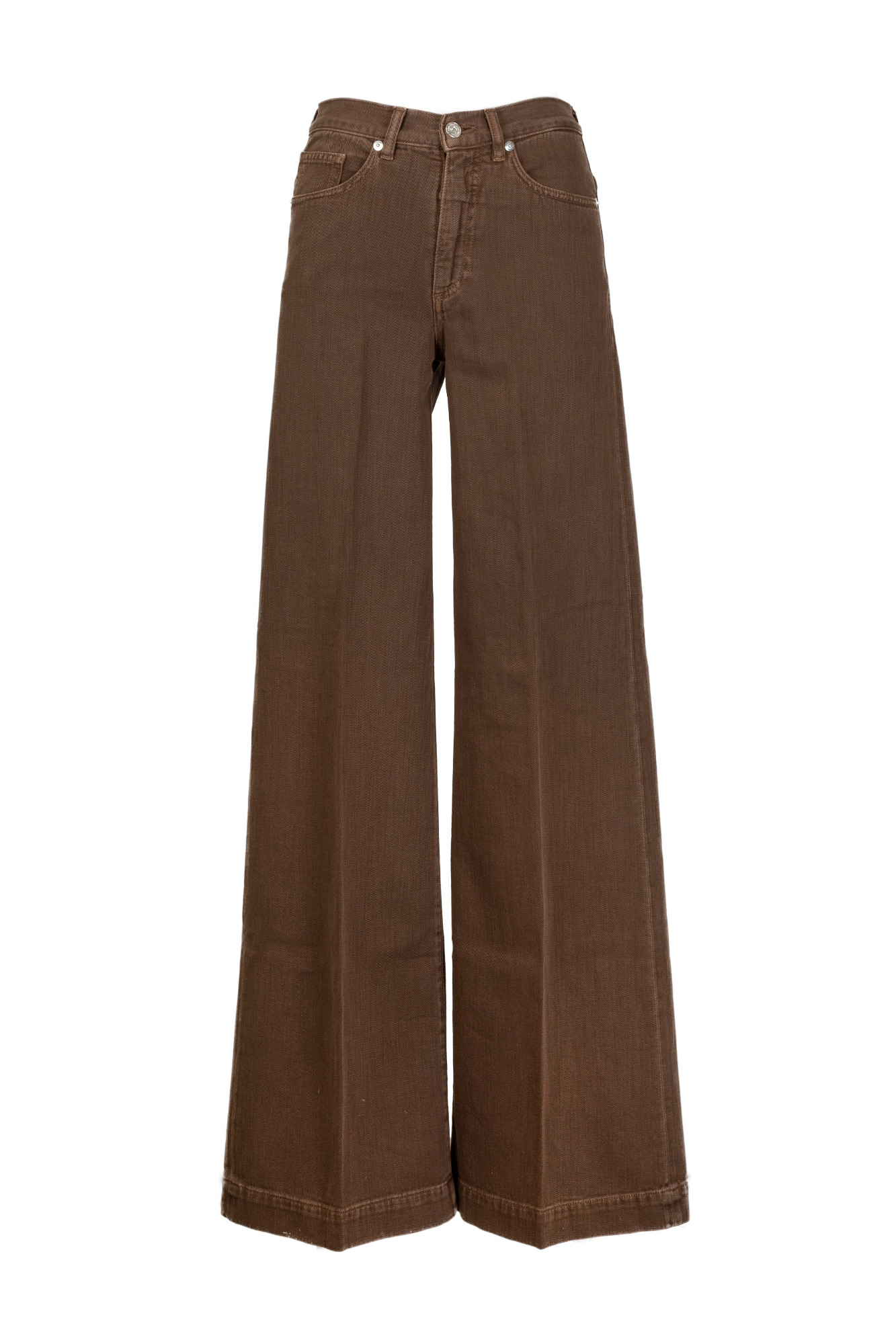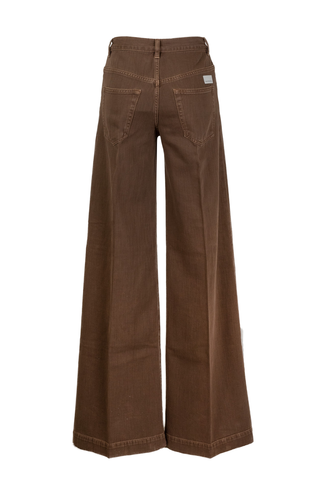 Jeans in denim bull color mocha, vita alta, gamba leggermente svasta, logo a contrasto sul retro.