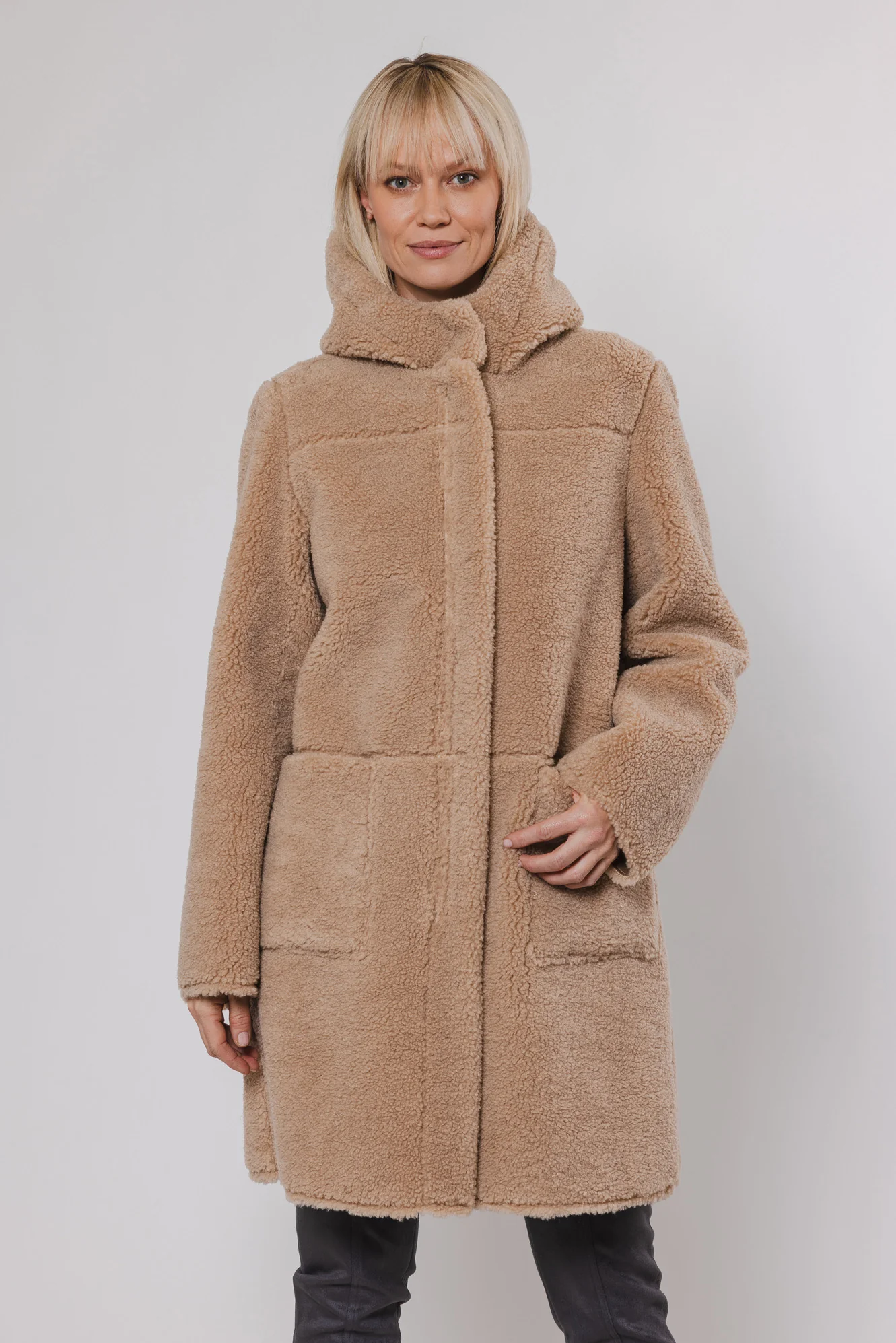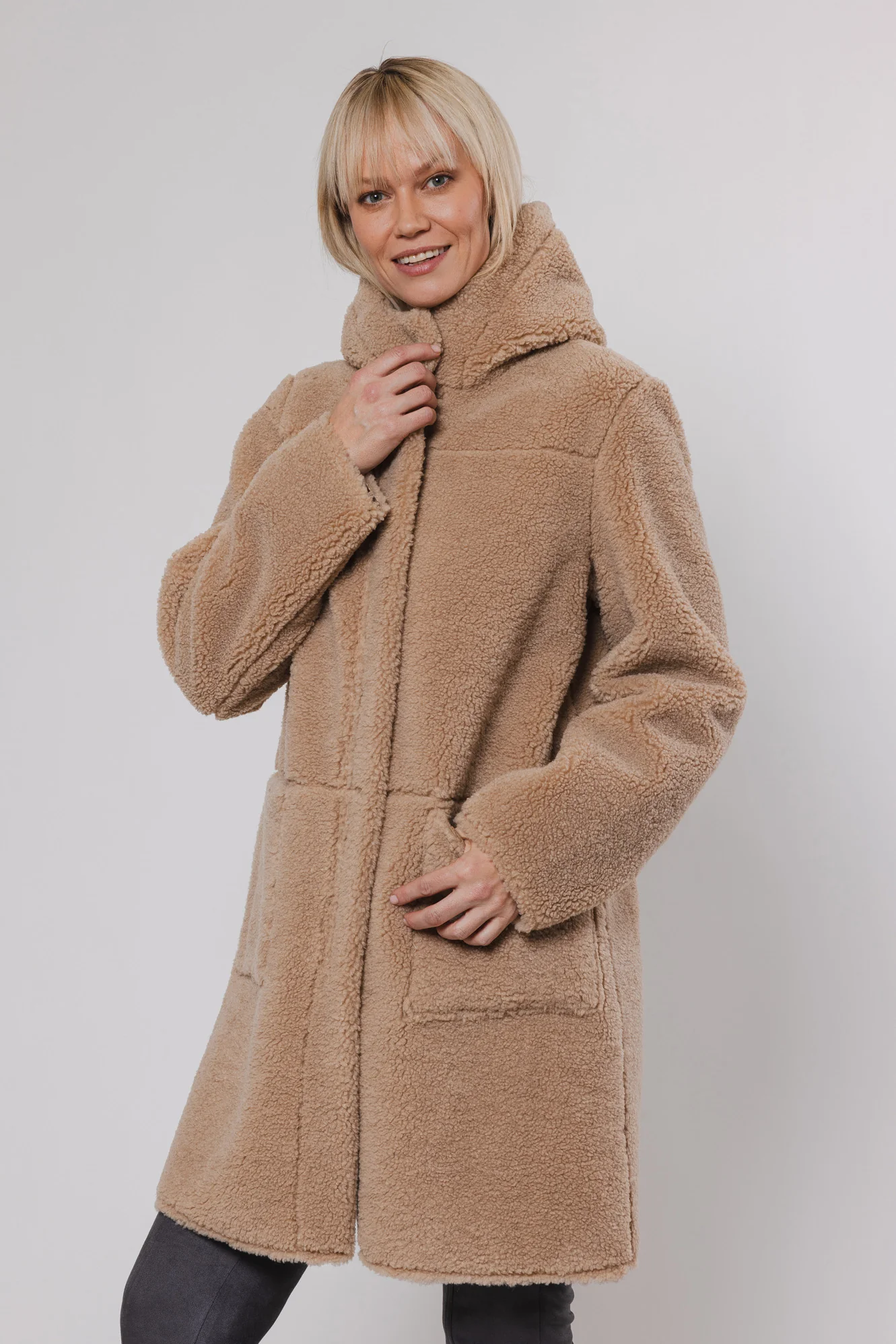 Cappotto in ecopelliccia reversibile.