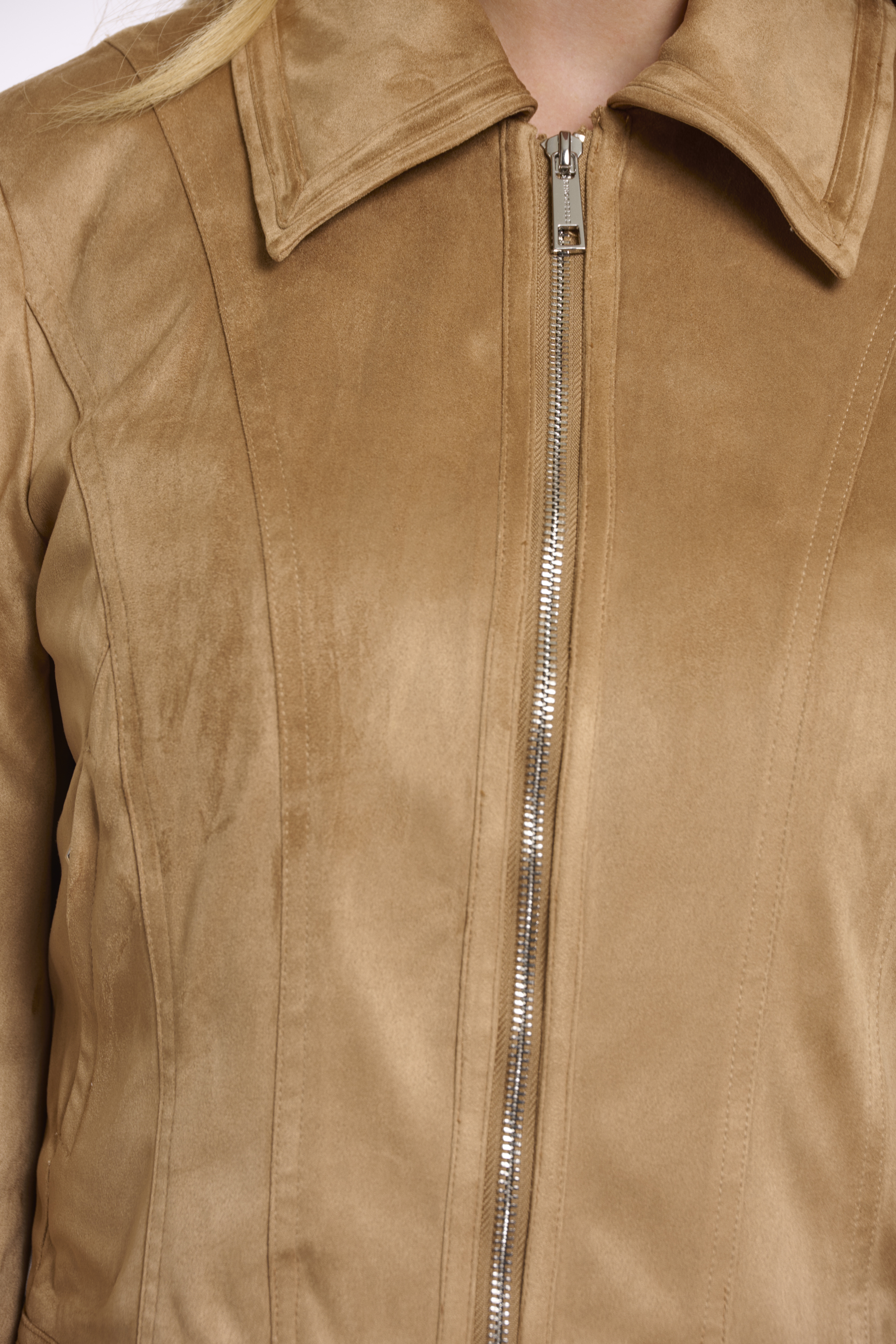 Giacca con chiusura a zip e colletto in ecodainetto.