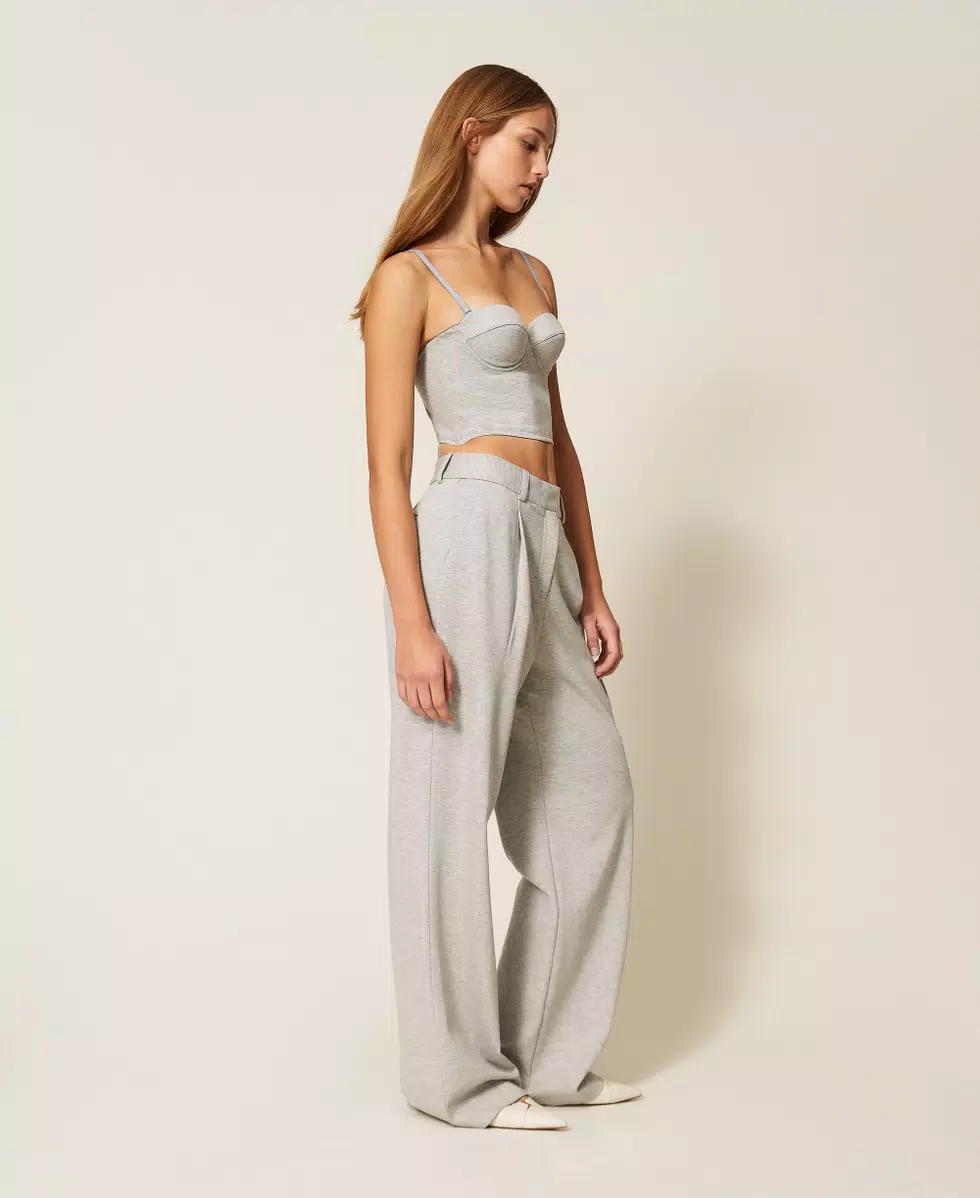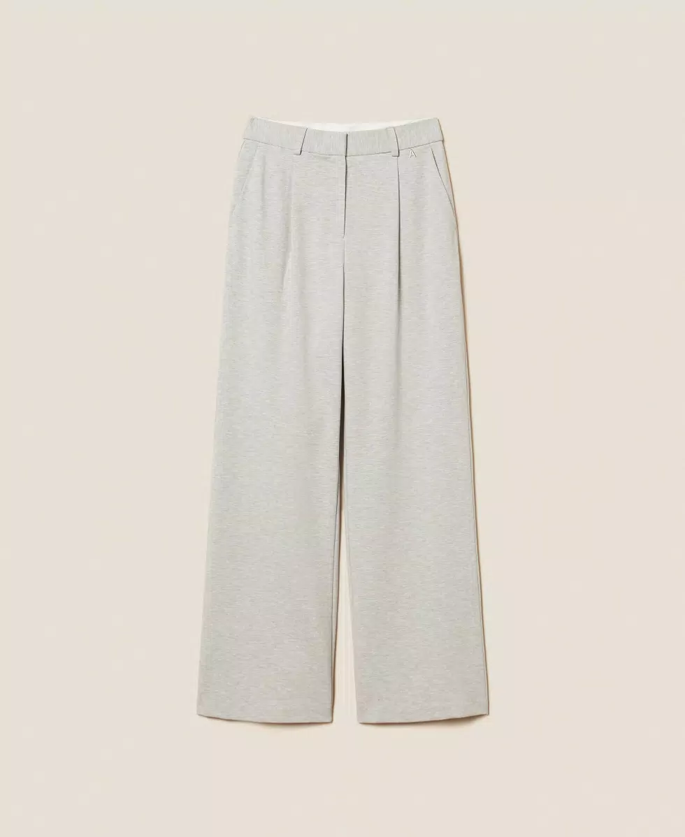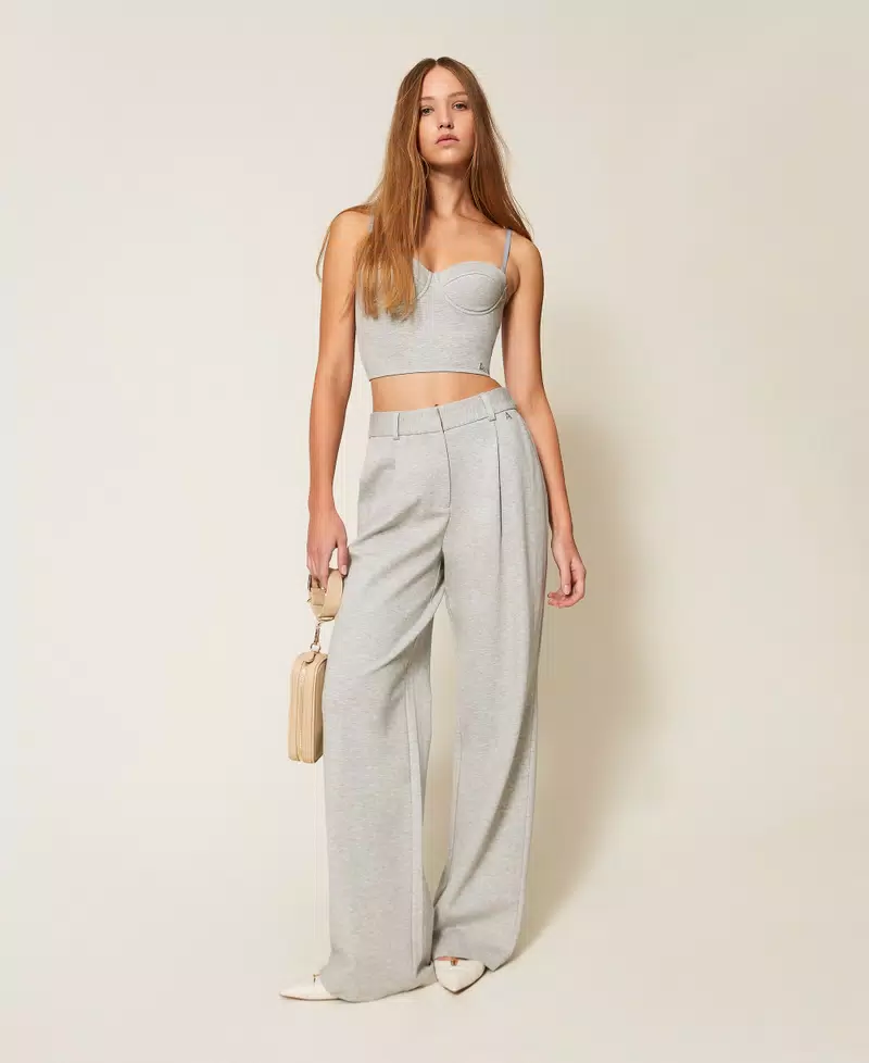 Pantaloni collezione Actitude in punto Milano di viscosa con vita sostenuta e rifinita internamente da piping, con costruzione tipica delle confezioni sartoriali. Hanno chiusura con gancio a uomo e zip, pinces, tasche alla francese ai fianchi, filetti sul retro, linea a palazzo.