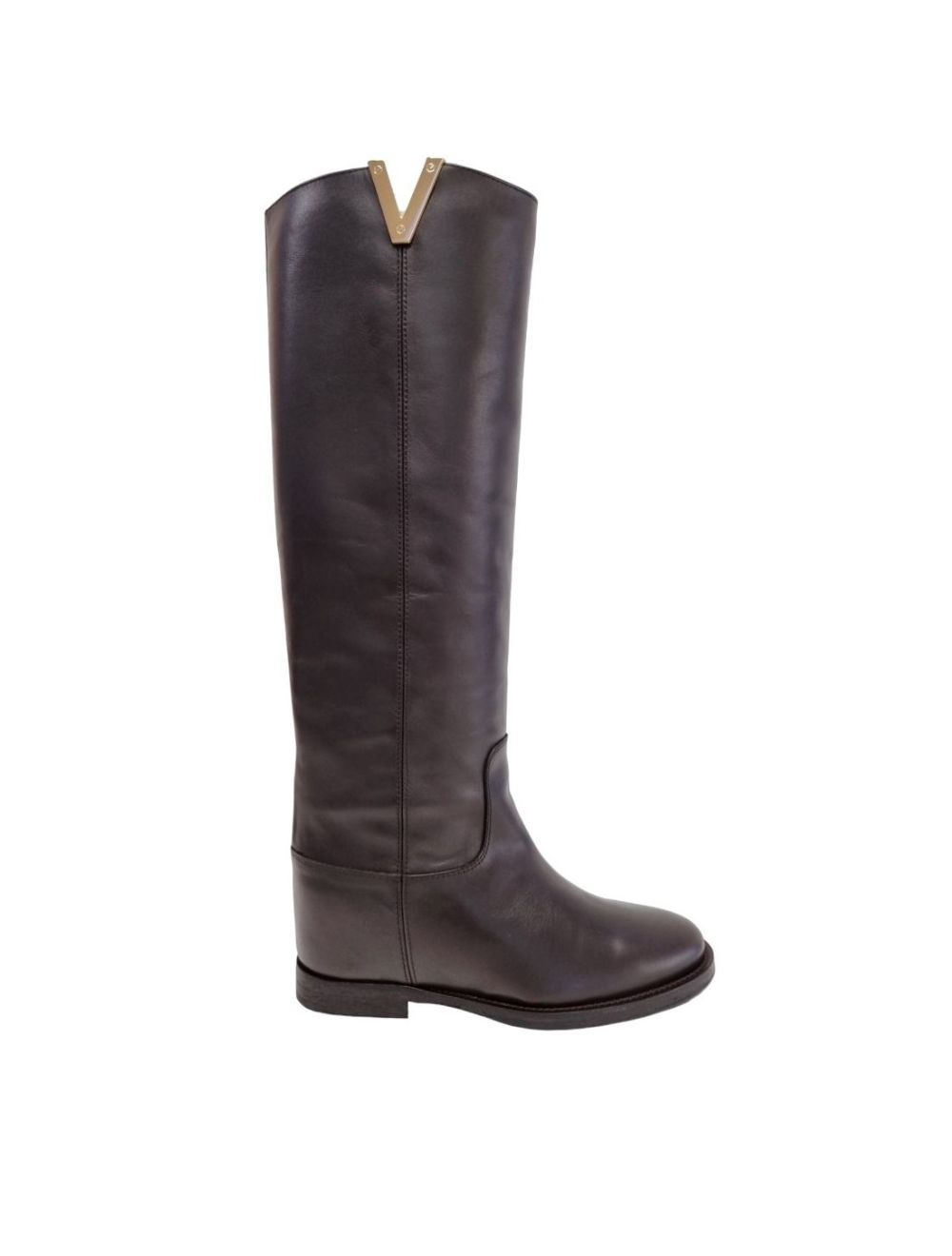 Stivale Via Roma 15 modello Santa Monica color moro, V dorata liscia, gambale alto, zeppa interna da 3,5 cm.