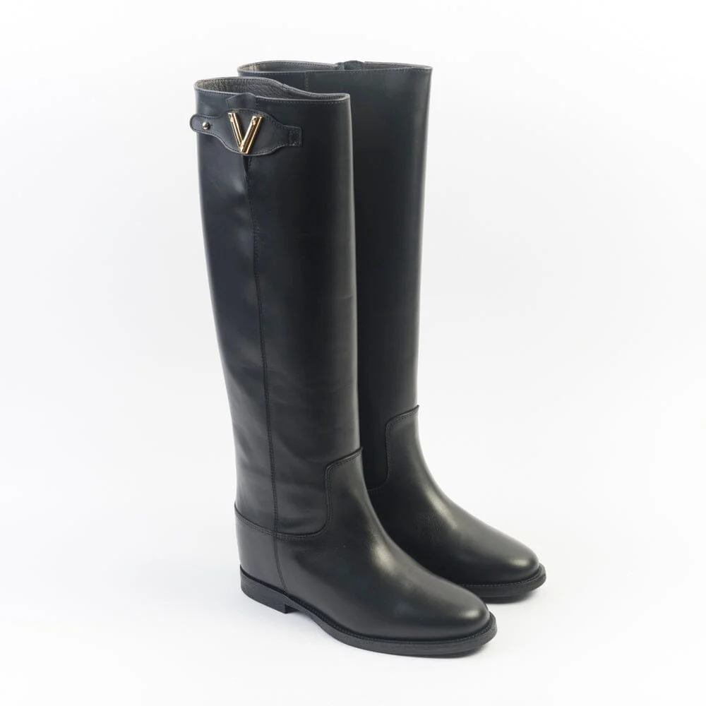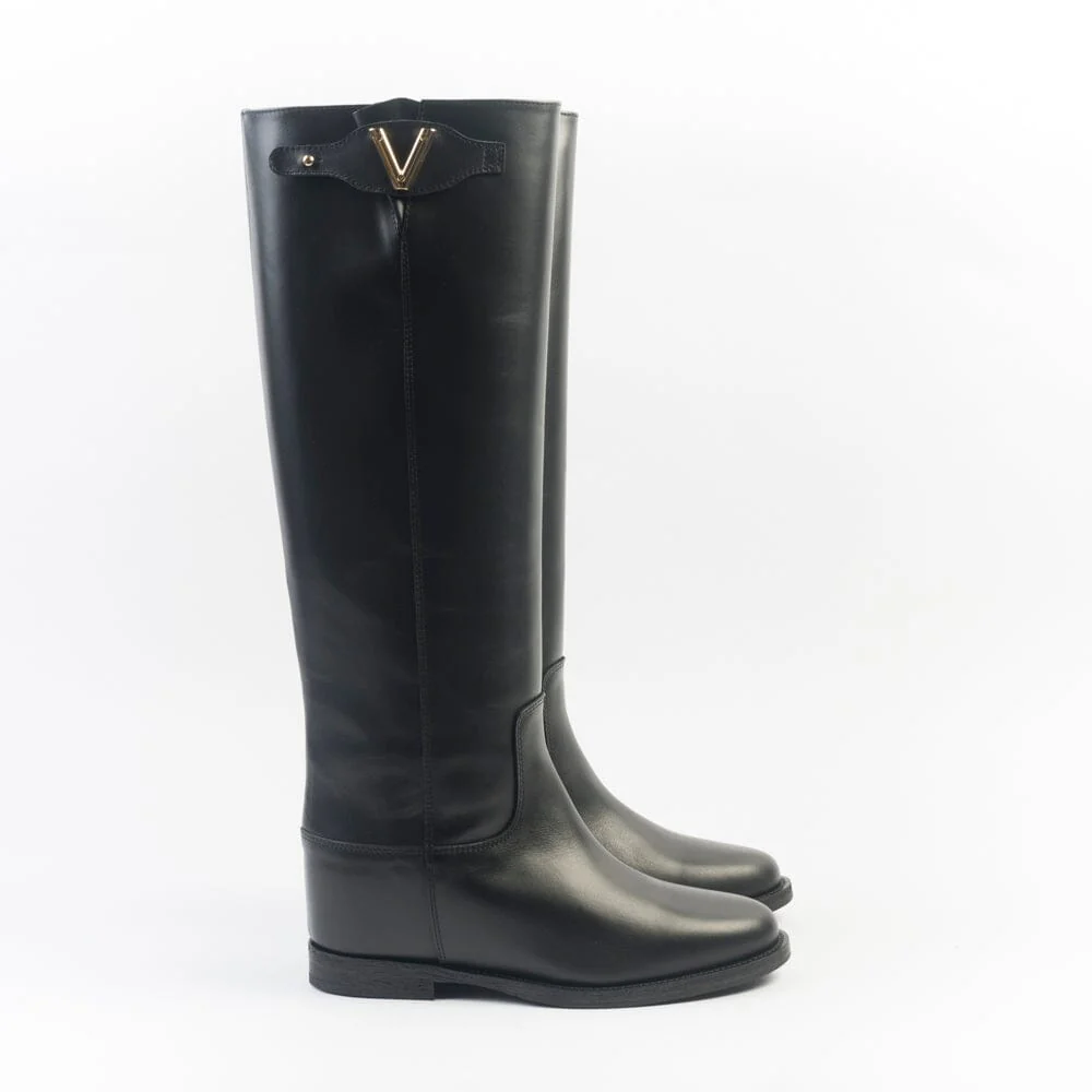 Stivale Via Roma 15 modello Santa Monica New, V dorata piccola con pattone, gambale alto, zeppa interna da 3,5cm.